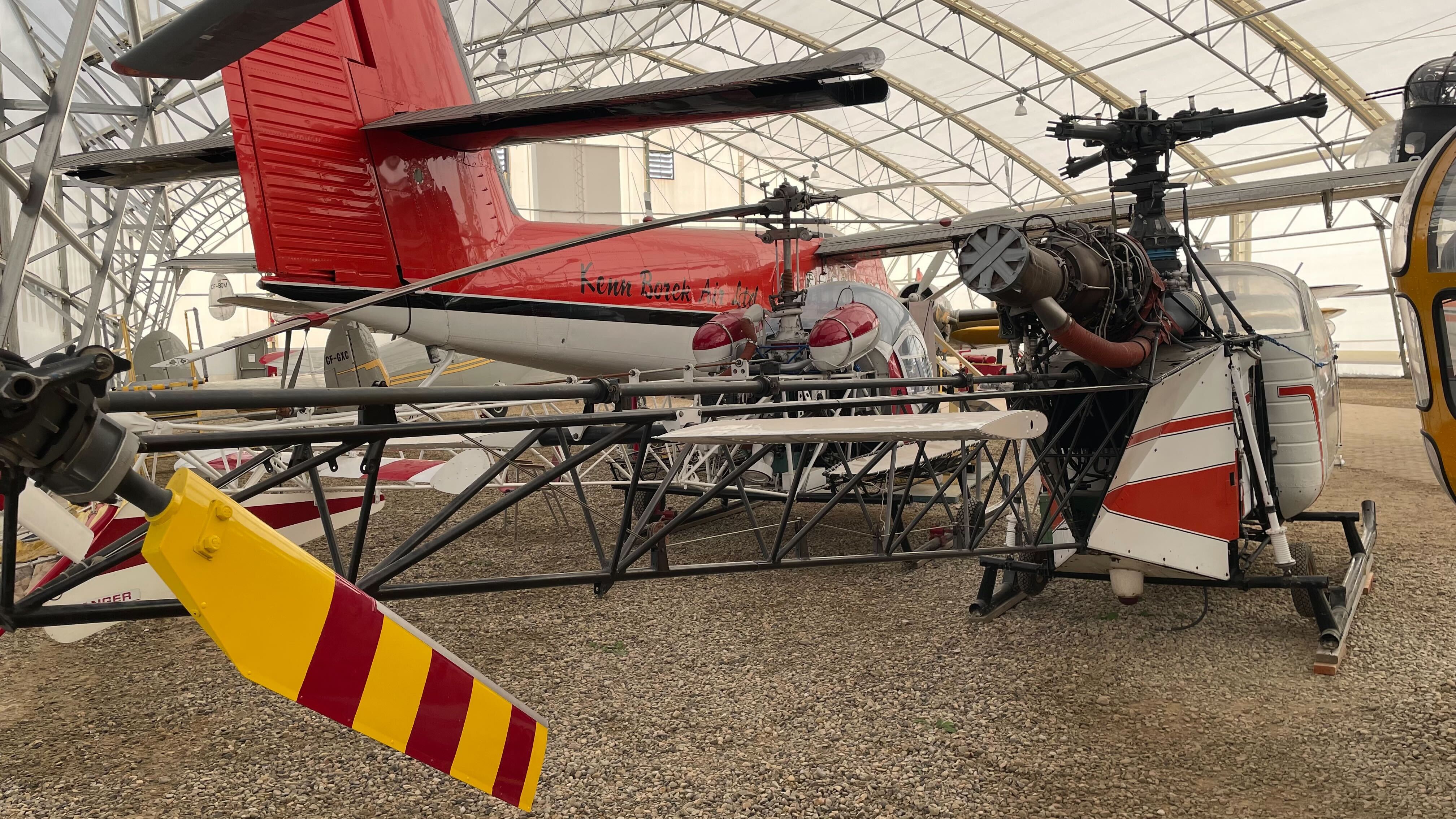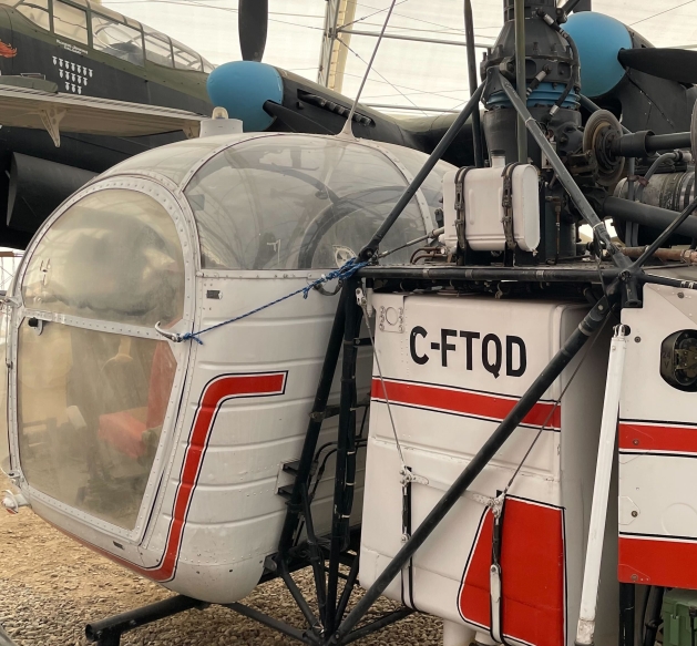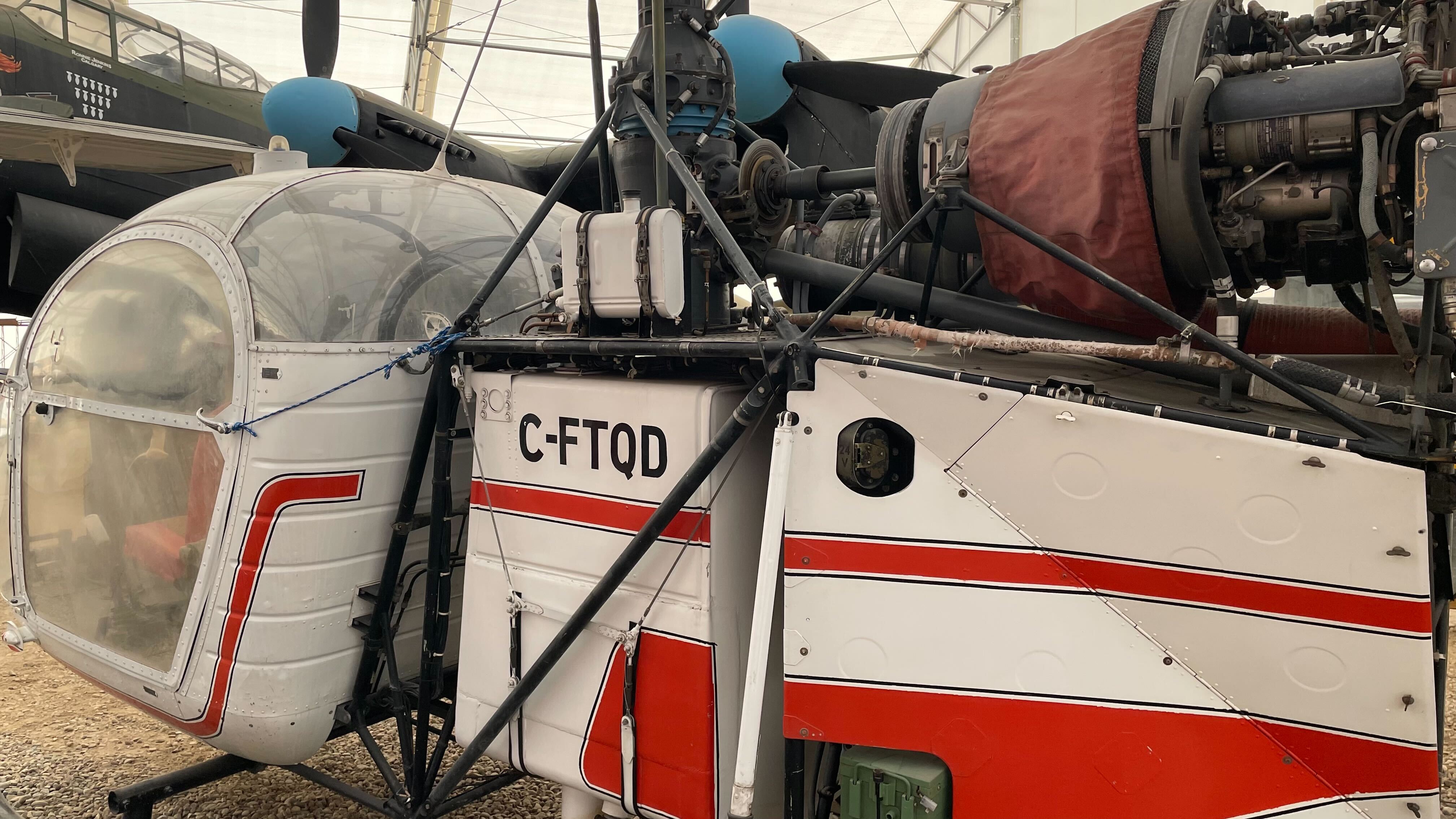The remains of the aircraft was acquired by Eagle Copters Ltd. of Calgary, Alberta who later donated the aircraft to The Hangar. Eagle Copters are fantastic neighbours to The Hangar and are part of the local aviation network and community.